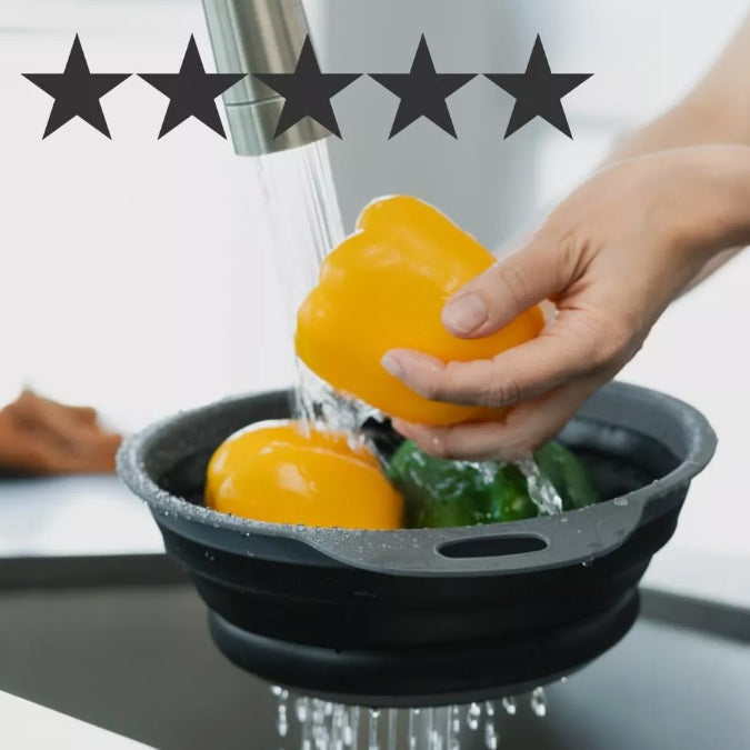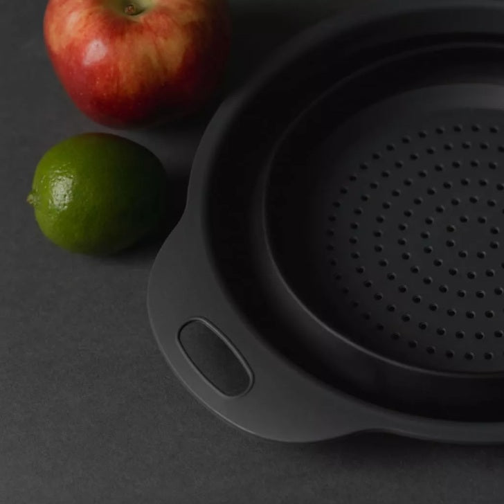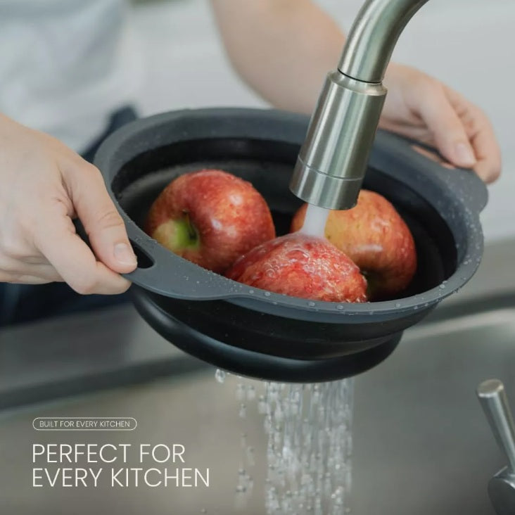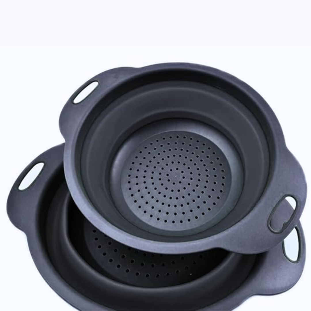 Colador Gris Retráctil. Olvídate del desorden en tus muebles al guardar. Esta canasta se pliega con facilidad, ahorrando espacio y manteniendo tu cocina ordenada y organizada. Desde pastas, hasta frutas y verduras. Fabricada en PP y caucho, esta cesta es resistente, duradera, apta para lavavajillas, no tóxica, libre de olores. Cocina con tranquilidad sabiendo que estás utilizando utensilios de calidad. Calor sin preocupaciones; sumerge el colador en agua caliente, sin temor a daños. Su alta resistencia al calor la convierte en un utensilio confiable para cualquier cocina.