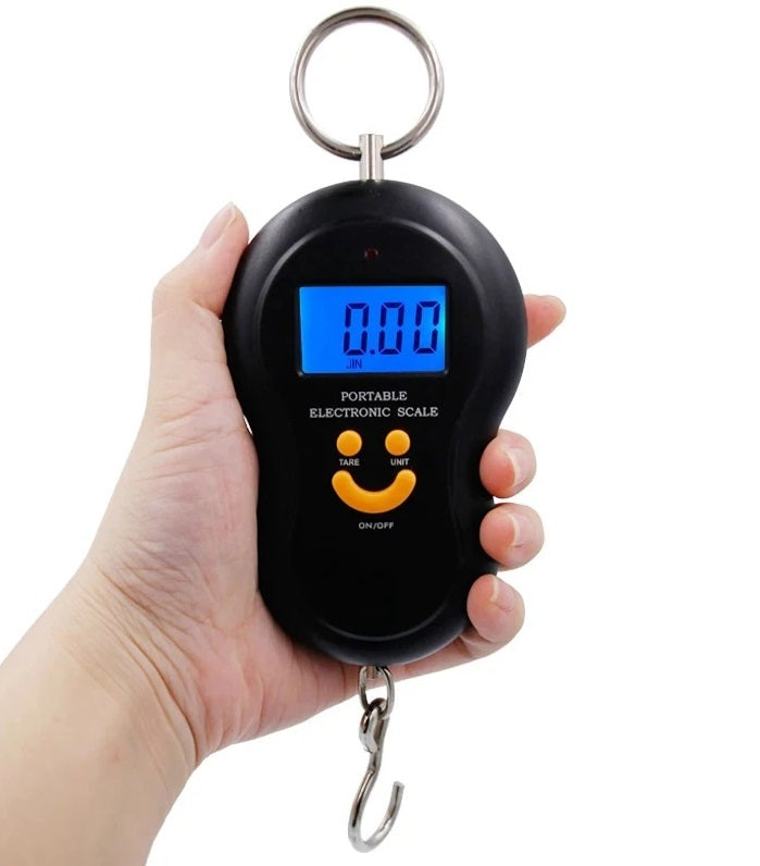 Pesa digital con gancho. Utensilio indispensable para pesar todo tipo de objetos, ideal para maletas, y validar los kilos que empacaste y evitar pagos adicionales en el aeropuerto. Reducida y compacta, puedes llevarla donde quieras; De gran calidad, funciona con 2 pilas AAA. Posee 4 modos de peso LB/KG/JIN/OZ. Peso máximo: 40Kg.