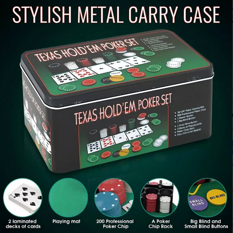 Juego de Póker y Blackjack ¡Lleva la Emoción del Casino a Casa! ¿Listo para vivir la emoción de las apuestas desde la comodidad de tu hogar? Con este juego, disfrutarás de la adrenalina y la estrategia del casino mientras aprendes y mejoras tus habilidades. Ideal para noches de juegos, reuniones con amigos o para practicar antes de ir al casino. Este set completo, incluye todo lo necesario para recrear el ambiente de un casino profesional. Es perfecto tanto para principiantes que quieren aprender las reglas, como para jugadores experimentados que desean mejorar su estrategia y probabilidad, o simplemente, una gran forma de pasar el tiempo con amigos y familiares. Incluye cartas, fichas, y una alfombra de juego que imita el ambiente del casino.