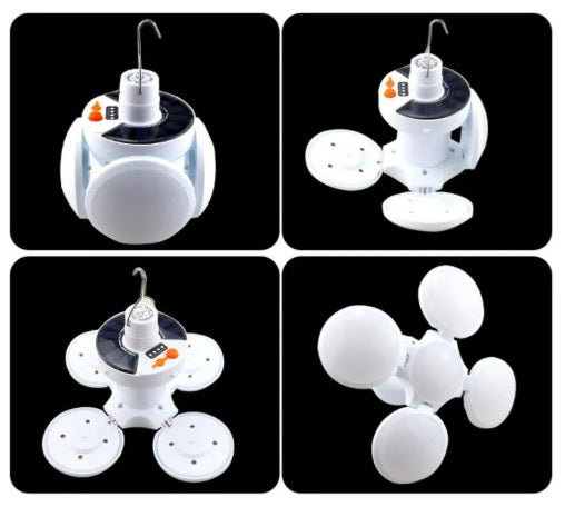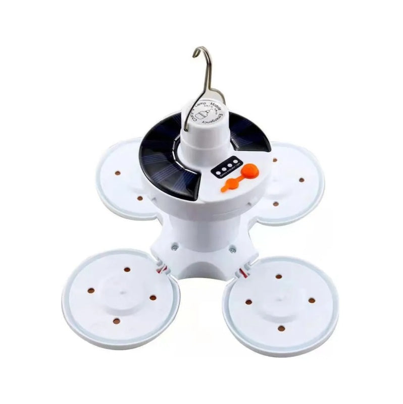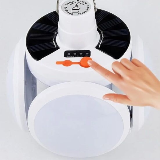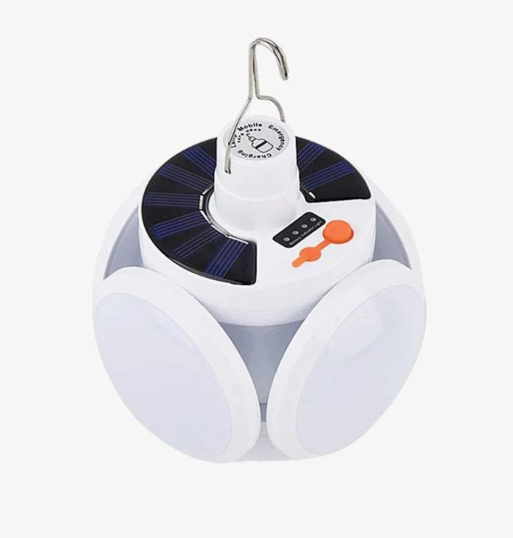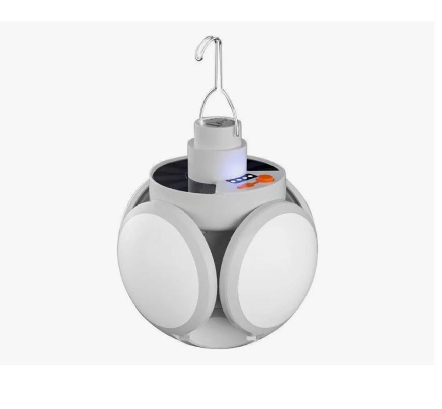 Lámpara Emergencia Triple Foco Esférico, la herramienta ideal para mantenerte iluminado durante tus actividades al aire libre o en caso de apagones. Equipado con un panel solar de alta eficiencia, recarga su batería de forma sostenible, ofreciendo energía renovable donde sea necesario. Su luz potente garantiza una iluminación clara y duradera, mientras que el diseño compacto facilita su transporte. Además, incluye un puerto para recargar dispositivos móviles, asegurando conectividad en todo momento. Su batería de gran capacidad permite un uso prolongado, incluso con las tres luces encendidas simultáneamente.