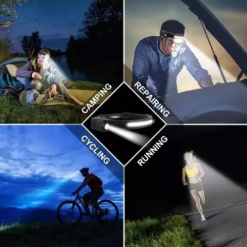 Linterna LED frontal, en forma de cintillo ajustable, de diseño ergonómico, y gran cobertura de iluminación. De buen tamaño, cómoda, fácil de usar y transportar. Cuenta con interruptor doble (interruptor de sensor + interruptor de encendido) y en el centro una gran luz de inundación (ángulo de 230°) y en el costado, una luz de foco brillante, alta . Su batería incorporada es de litio, recargable USB. Ideal para: búsqueda, patrullaje, camping, caza, senderismo, pesca nocturna, equitación nocturna y otras actividades al aire libre. Color: negro. Tiempo de vida: 5-12h. Modo de iluminación: Alto/Bajo/Estroboscópico (presione prolongadamente el interruptor del sensor). Alcance máximo: 200-500 metros. Clasificación impermeable: IPX4.