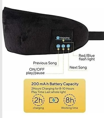 Máscara para los ojos con auriculares Bluetooth; promueve el descanso y el buen dormir. Ideal para bloquear la luz y proporcionar un ambiente oscuro, facilitando el sueño, ya sea en tu dormitorio, o mientras viajas. Accesorio de manos libres con música inalámbrica, micrófono con parlantes integrados, con correa ajustable. Carga de 2 A 2,5Hrs. Para una reproducción de hasta 8Hrs. Antifaz ideal para aliviar la fatiga, la migraña y el estrés; refresca tu cerebro, alivia las ojeras e hinchazón. Te permitirá descansar, meditar y dormir cómodamente, y lo mejor, es que es lavable. Equipado con auriculares Bluetooth, te permite escuchar tu música, meditaciones o podcasts favoritos, sin necesidad de auriculares adicionales y cables que molesten. Es la combinación perfecta de comodidad y tecnología para mejorar la calidad del sueño, el descanso, relajación y meditación.