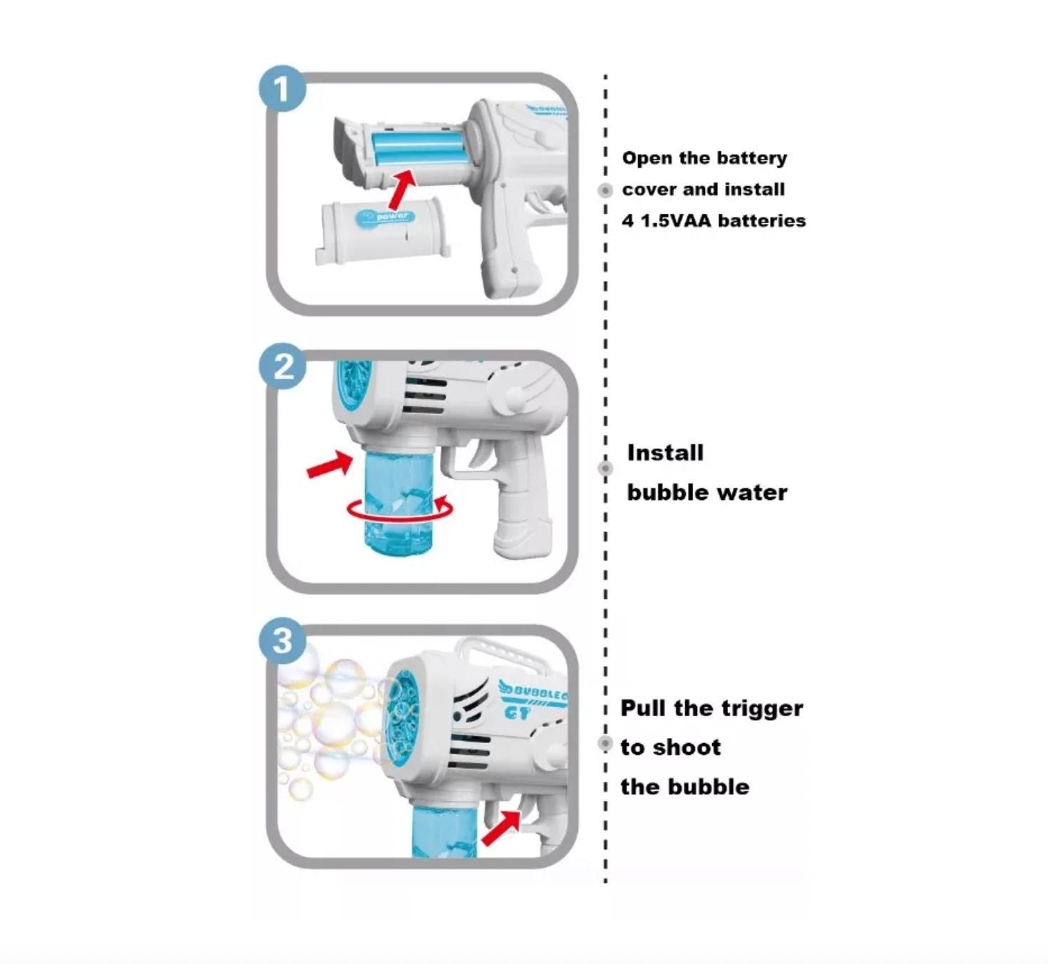 Disfruta de momentos llenos de alegría con esta pistola de burbujas para niños, equipada con 12 orificios que crean un espectáculo de burbujas constante. Fácil y segura de usar, es perfecta para fiestas, juegos al aire libre o en el jardín. Fabricada en plástico resistente y liviano, ofrece durabilidad y comodidad. Incluye líquido para burbujas, y funciona con 4 pilas AA (no incluidas), asegurando diversión sin interrupciones. Transforma cualquier ocasión en una experiencia mágica con esta divertida pistola de burbujas.