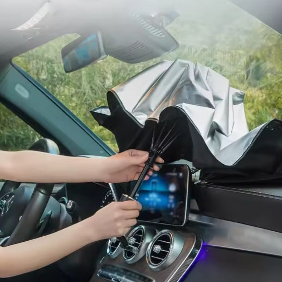 Parasol de vehículos, la protección solar efectiva para tu auto. Material de aislamiento térmico UPF50+, puede bloquear eficazmente el 99% de los rayos ultravioleta. Protege el interior de tu vehículo y bloquea eficazmente el calor UV. Evita que la tapicería se queme, destiña y agriete, además de lograr sombra y mantener el interior de tu auto fresco y cómodo. Simplemente abre y expande para adaptarse fácilmente al parabrisas, igual que un paraguas. Resistencia al desgaste, resistencia al envejecimiento, resistencia al impacto. Sin olor. Se adapta perfectamente a la mayoría de los parabrisas de automóviles. Se instala en segundos. Tamaño pequeño, práctico y fácil de transportar. Guárdalo en la guantera.