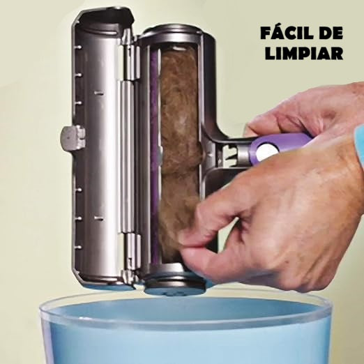 Rodillo Removedor de Pelos de Mascotas, un innovador producto que elimina los pelos de tus peluditos, esto, utilizando tecnología Micro Sonic para recoger y eliminar el pelo en superficies no deseadas, con su gran capacidad de limpieza, a través de la vibración, levanta el pelo, lo absorbe y guarda en su interior. Equipado con miles de microcerdas, atrapa hasta el pelo más fino. Fácil de usar, sólo debes deslizarlo hacia adelante y hacia atrás, en cualquier superficie, y atraparás pelo, caspa, pelusa y mucho más. Esta tecnología se encarga de levantar el pelo incrustado, permitiendo que sea barrido fácilmente, llegando hasta las fibras más escondidas, ya que la luz LED te ayuda a ver pelos de cualquier color, en cualquier superficie, incluso en espacios oscuros o con poca luz. Mientras lo usas, se limpia automáticamente, y cuando termines, solo debes presionar el botón para vaciar la cámara. Ideal para usar en tu ropa, sillones, alfombras, almohadas, sofás, mantas, tapicería de autos, ropa de cama y mucho más. Atención! Para su funcionamiento, re quieren 2 pilas AA (no incluidas).
